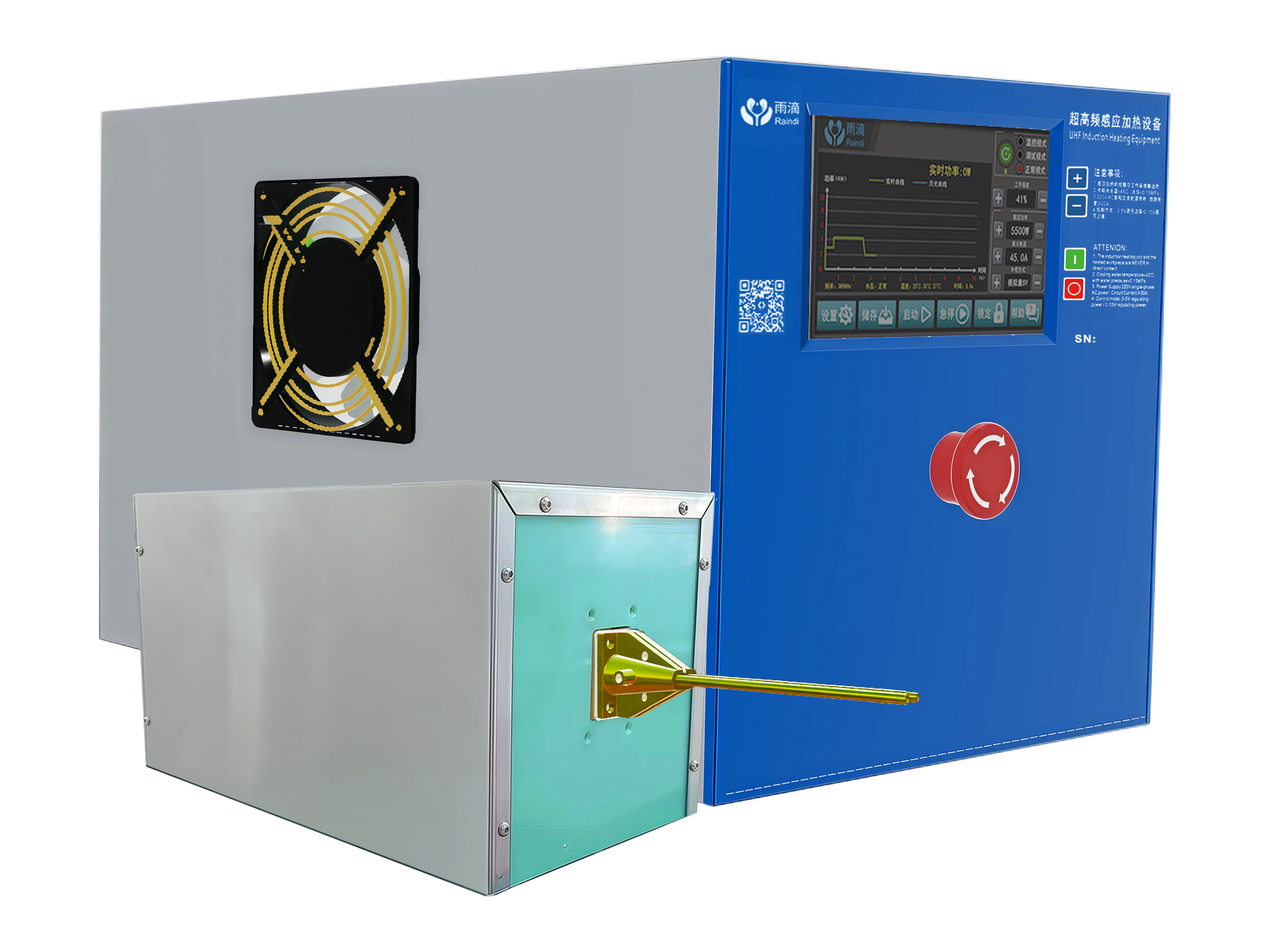 雨滴科技三相四代超高频感应加热设备,是专为工业制造场景打造的高性能水冷型感应加热电源装备。设备依托先进的电磁感应加热技术与数字控制方案,实现精准、高效、稳定的金属热加工,为各类精密工业生产提供可靠的加热解决方案。